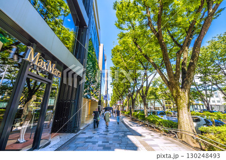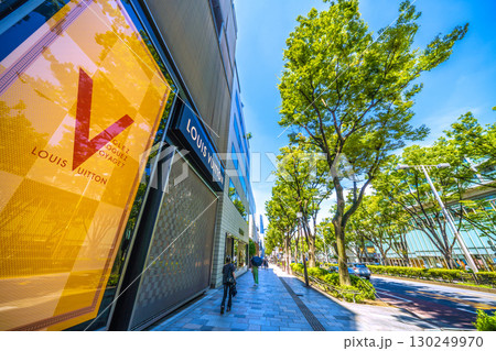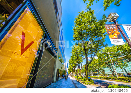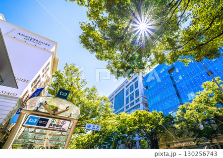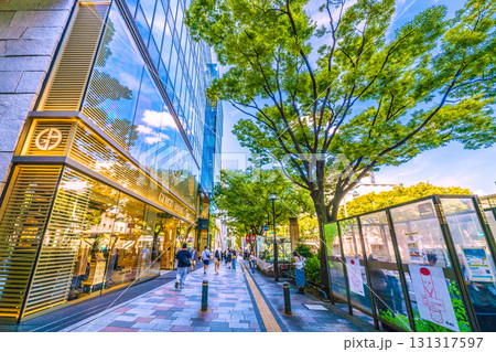 日本の東京都市景観 東京・表参道の緑溢れる並木やFENDIなどを望む