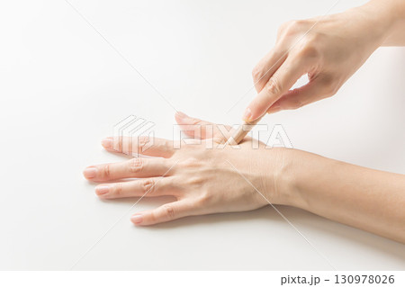 ツボ押し棒で手のツボを押す 合谷 写真素材
