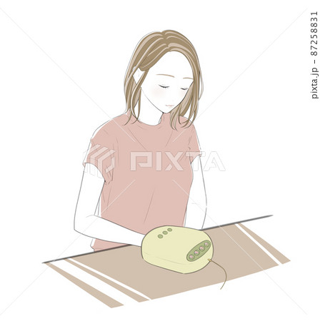 ハンドマッサージ機でハンドケアする女性のイラスト