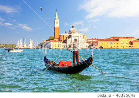 San Giorgio Maggiore Island of Venice and a traditional gondolie