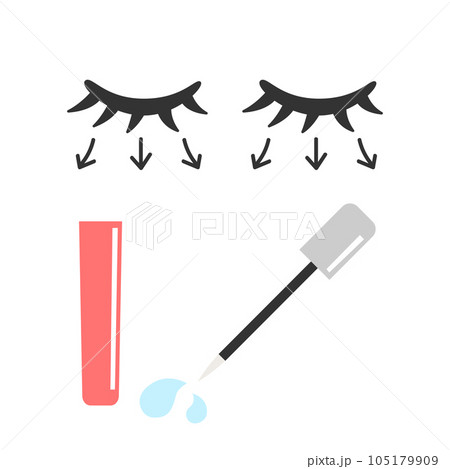 まつ毛美容液でまつ毛が伸びるイメージ。ベクターイラスト。