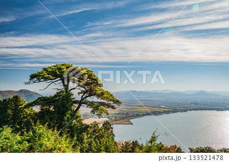 長命寺境内から見下ろす琵琶湖 滋賀県近江八幡市