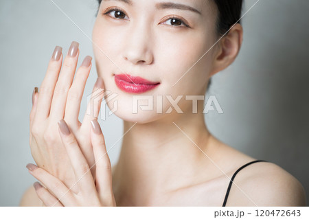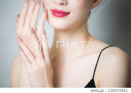 綺麗な手元のネイルのクローズアップと美人な女性
