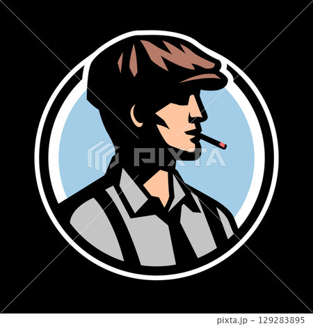 Silhouette of a man in a cap smoking a cigarette on a dark background.