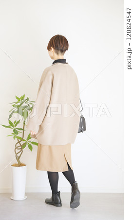 女性秋服冬服のファッションコーディネート全身(縦向き)