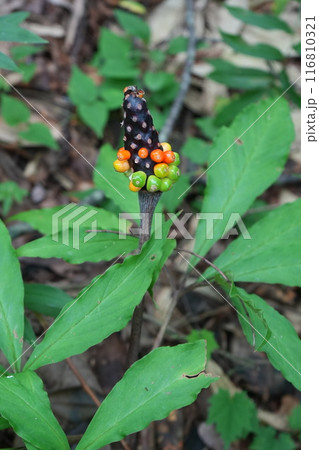 夏の森で、すくすくと成長を続けるマムシグサの実。