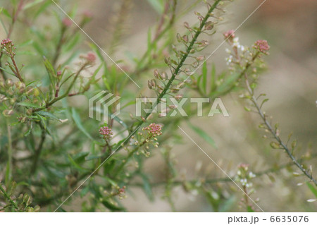 群れ咲きするマメグンバイナズナ(小さな白い花とつぼみをつけた豆軍配薺)