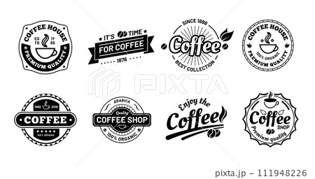 Coffee badges. Cafe logo stamp sticker. Vector of coffee