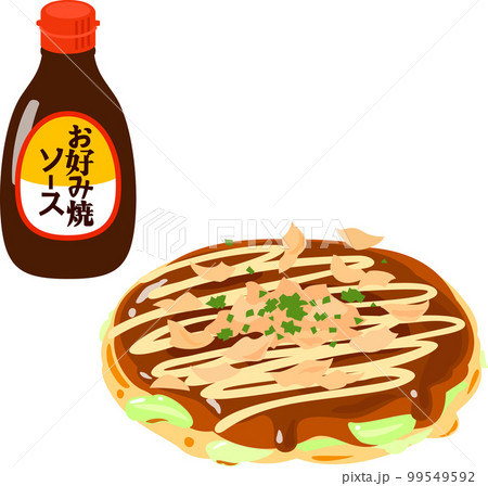 お好み焼き用ソースとお好み焼き
