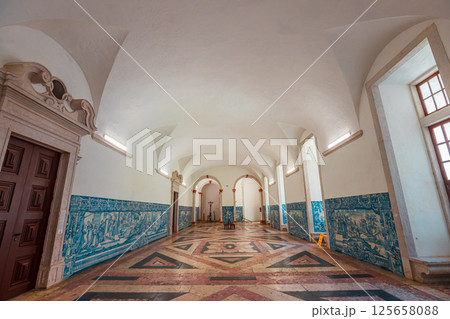 Interior of Faro Cathedral, Se Catedral in Faro, Algarve, Portugal. With walls finely decorated by azulejos tiles.
