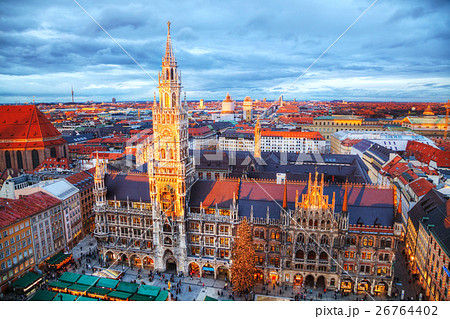 Munich Germany, high angle view panorama city skyline at Marienplatz new Town Hall Square
