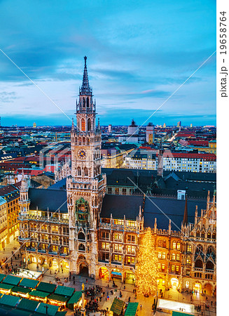 Aerial view of the City Hall at the Marienplatz in Munich, Germa
