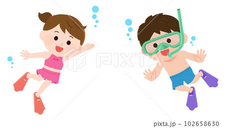 シュノーケリングを楽しむ男の子と女の子 イラスト