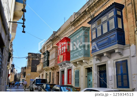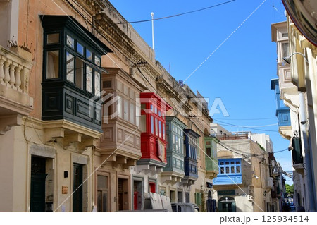 マルタ共和国、マルタ島、ラバト、カラフルな出窓のある街並