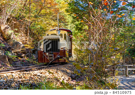 長野県_赤沢自然休養林の中を走り抜ける森林鉄道のトロッコ列車