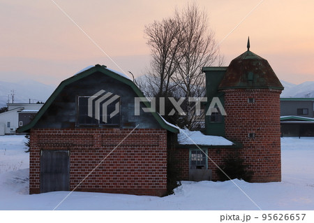 北海道 十勝地方 牧場のある風景(冬)
