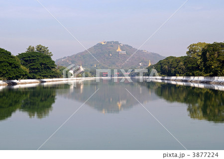 ミャンマー、マンダレー、旧王宮城壁、マンダレーヒル遠望