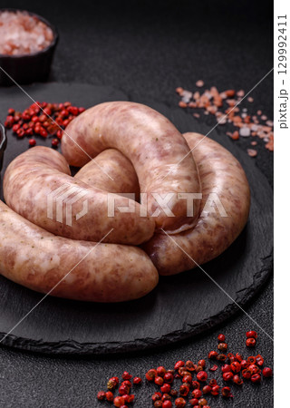 Raw meat sausages made from beef or pork, fresh meat for barbecuing or grilling. Raw sausages