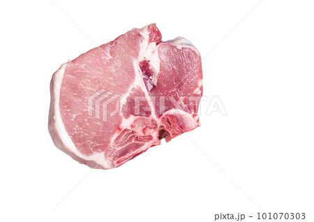 Uncooked Raw pork T bone chop meat steak on grill. Isolated on white background.