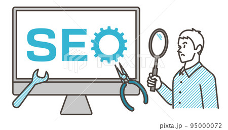 webマーケティング戦略としてSEOの分析・対策を行うビジネスマン【ベクターイラスト素材】
