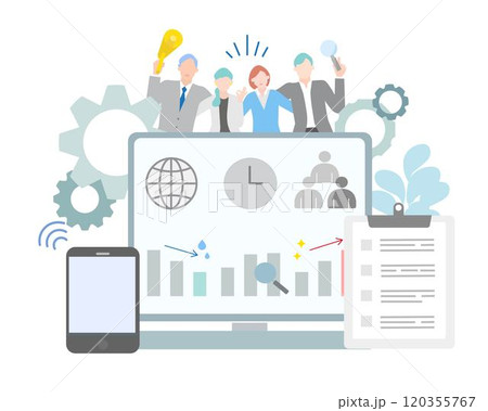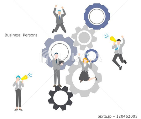 ビジネスパーソンーチームで働く-歯車ーオシャレイラストベクター素材