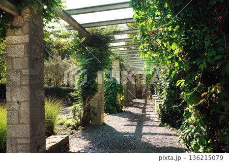 宮前公園のベンチとアナベル アジサイ ガーデン