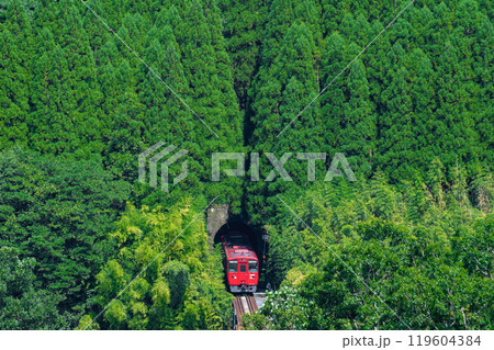 トロッコ線路と杉山 屋久島国立公園((夏