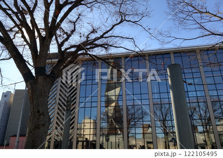ロマンチック茨城(水戸市の芸術の拠点「Mitorio]ミトリオ、市民会館とガラスに映る芸術館。)