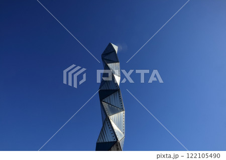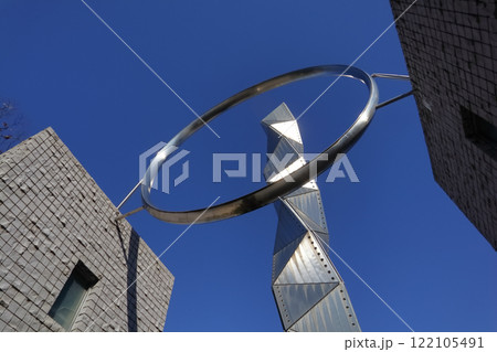 ロマンチック茨城(快晴の大空に浮かぶウエディングリング。)水戸市、水戸芸術館シンボルタワー