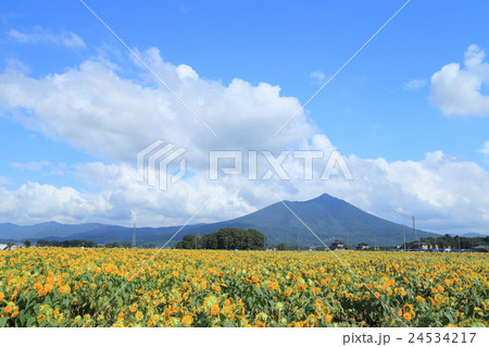 あけのひまわりフェスティバル 筑波山 右寄り 横構図