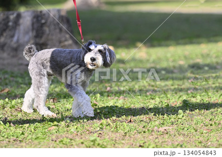 お散歩中のミニシュナ ミニチュアシュナウザー