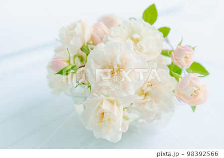 バラの花束 淡いピンク 白 背景白 ミニバラ 花束 おしゃれ コピースペース