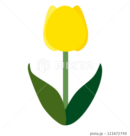 シンプルでフラットな一輪の黄色いチューリップのイラスト 白バック