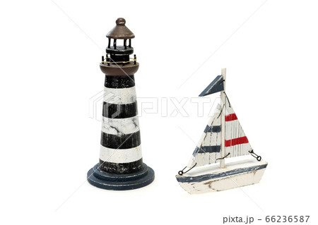ヨットのオブジェと燈台ヨットのオブジェと燈台