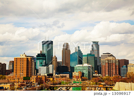 ミネソタ州ミネアポリスのフリーウェイとダウンタウンのビル群