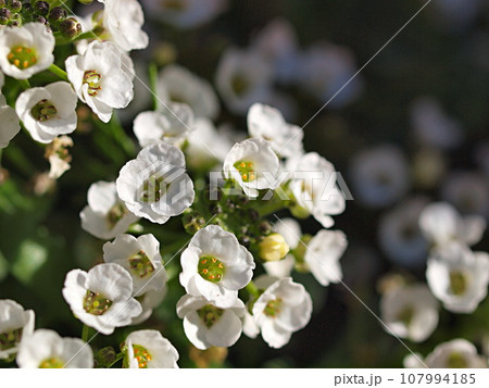 白い花を咲かせるアリッサム(スイートアリッサム、ニワナズナ、ニオイナズナ)
