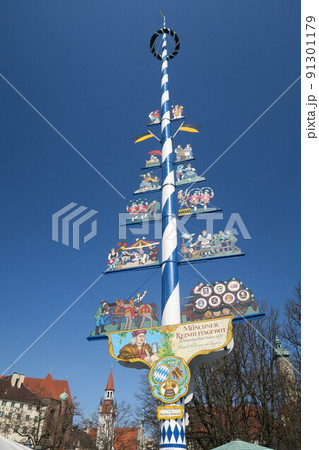 ドイツ ミュンヘン ヴィクトアリエン市場のメイポール