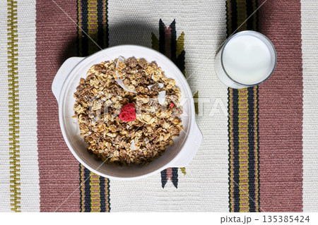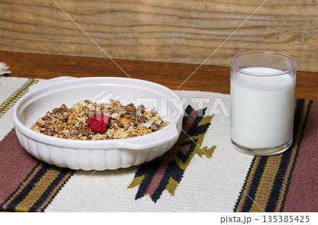 器にいれたミューズリーと牛乳