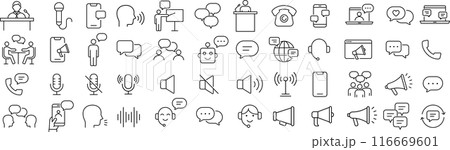 Voice line icons. Voicemail, microphone record and silence. Whisper talk, listen voice and ear hearing disability line icons. Speak recognition, phone dictation and audio sound wave. Vector