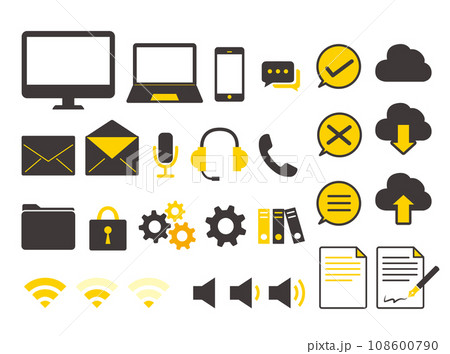 collection microphone icons functions applications audio recording communication, settings stop mute game