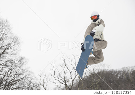 スノボでミュートグラブを決める男性