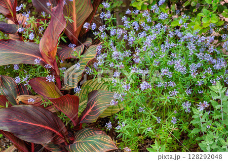 初夏のガーデンで美しく咲くタマクルマバソウの花