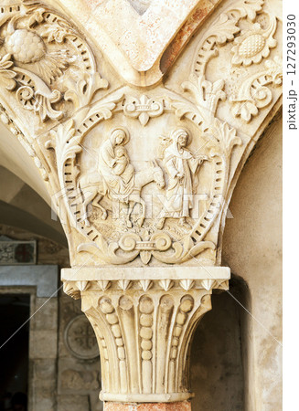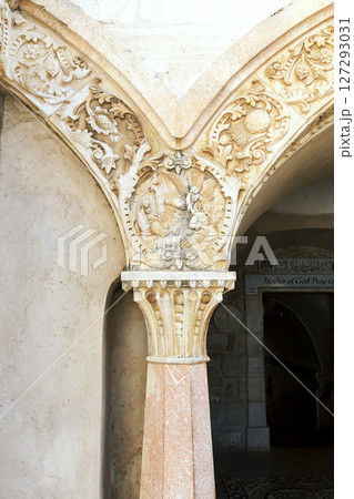 Ornately carved column of a Milk Grotto Church in Betlehem