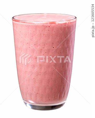 Strawberry milkshake or smoothie on a white wooden background. Healthy juicy vitamin drink diet or vegan food concept.