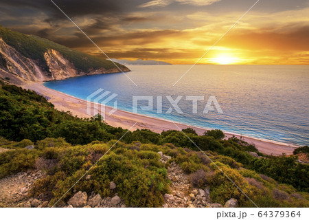 Sunset Myrtos Beach, Greece, Kefalonia, Ionian Sea
