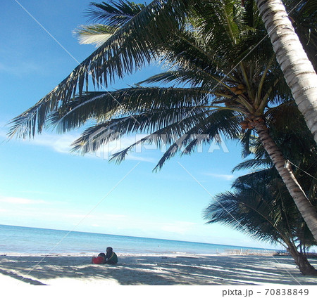 フィリピンのミンダナオ島の青空と海とヤシの木の風景