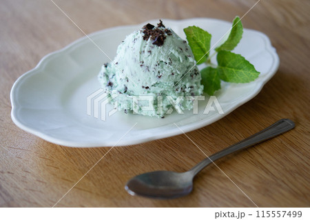 チョコミントアイスクリーム 夏のスイーツイメージ素材