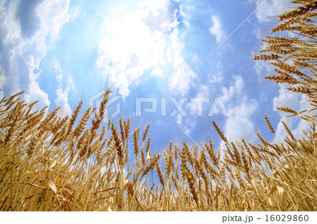 黄金色に染まる小麦の穂と空