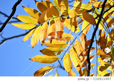 ムクロジ(無患子)の黄葉 / 果実はサポニンを含み泡立つので昭和初期まで石鹸やシャンプーとして利用。