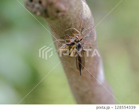 捕食しているマガリケムシヒキ